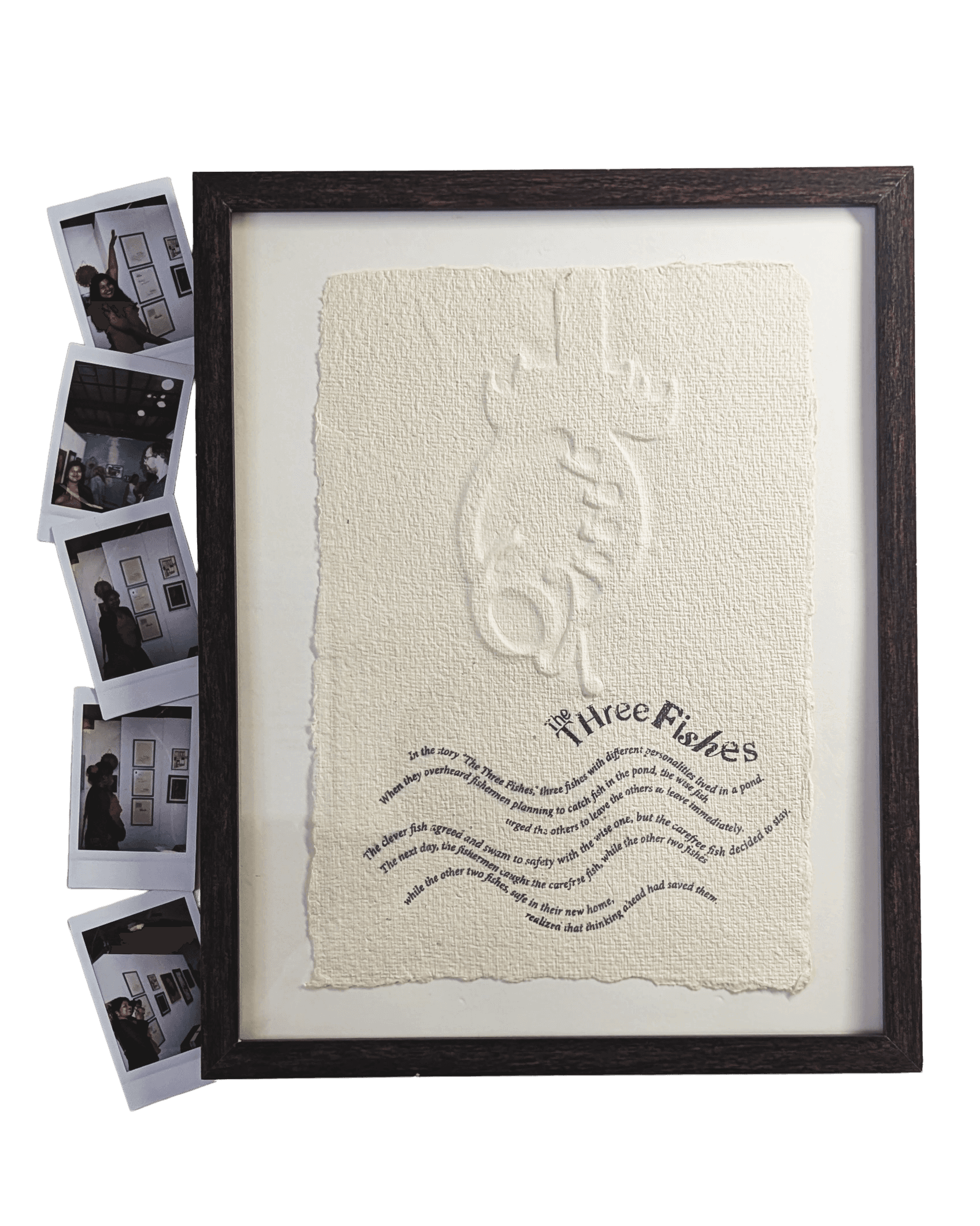 This project presents a unique, tactile retelling of three classic Panchatantra stories: The Elephants and the Mice, The Monkey and the Crocodile, and The Three Fishes. Inspired by ancient manuscripts, I used handmade paper with embossed illustrations to give the stories a physical form. Each tale features raised 3D elements that represent the central characters and moments, allowing the narrative to be visually experienced and through touch. The text is thoughtfully arranged around these embossed forms, creating a dynamic interaction between storytelling and design. This approach not only honors the traditional wisdom of the Panchatantra but also invites readers to engage with the stories more immersive and sensory, blending cultural heritage with modern design.